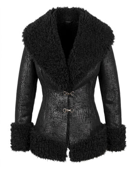 ![VALOR Shearling Coat - Contrast-texture shearling long coat]()