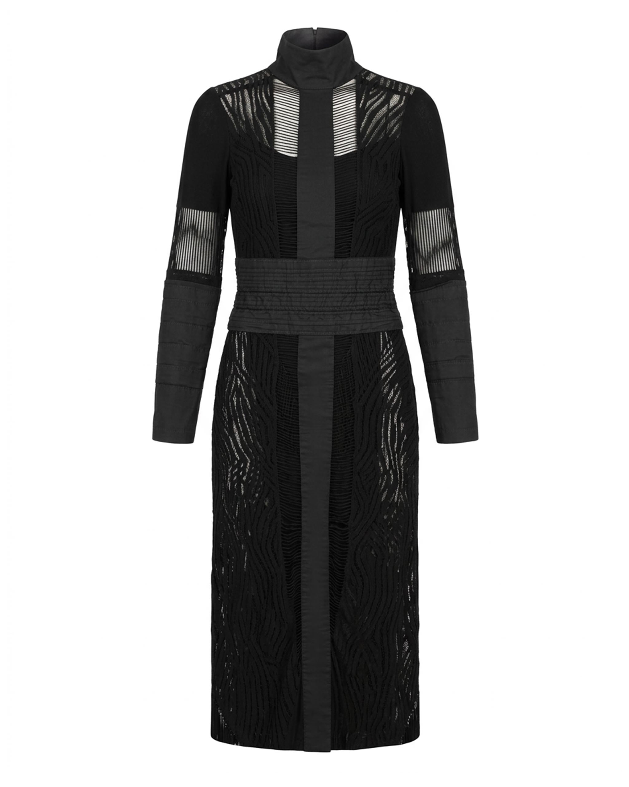 Care: Professional dry clean only; do not iron relief sections; steam lightly from the inside; store on a wide hanger to maintain architectural form.