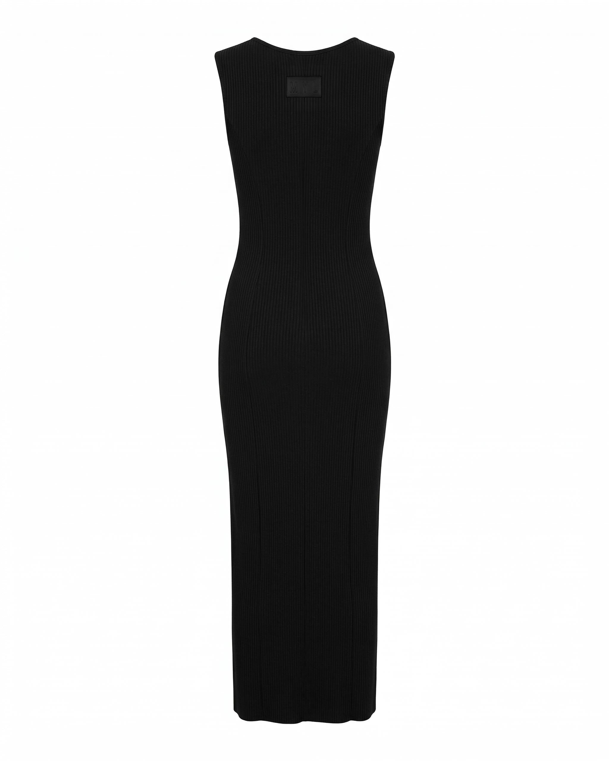 RIBBED COLUMN DRESS - Minimal ribbed dress with elongated silhouette