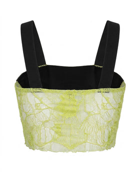 ![LACE CORE BUSTIER – Crop top with French lace front and elastic straps]()