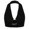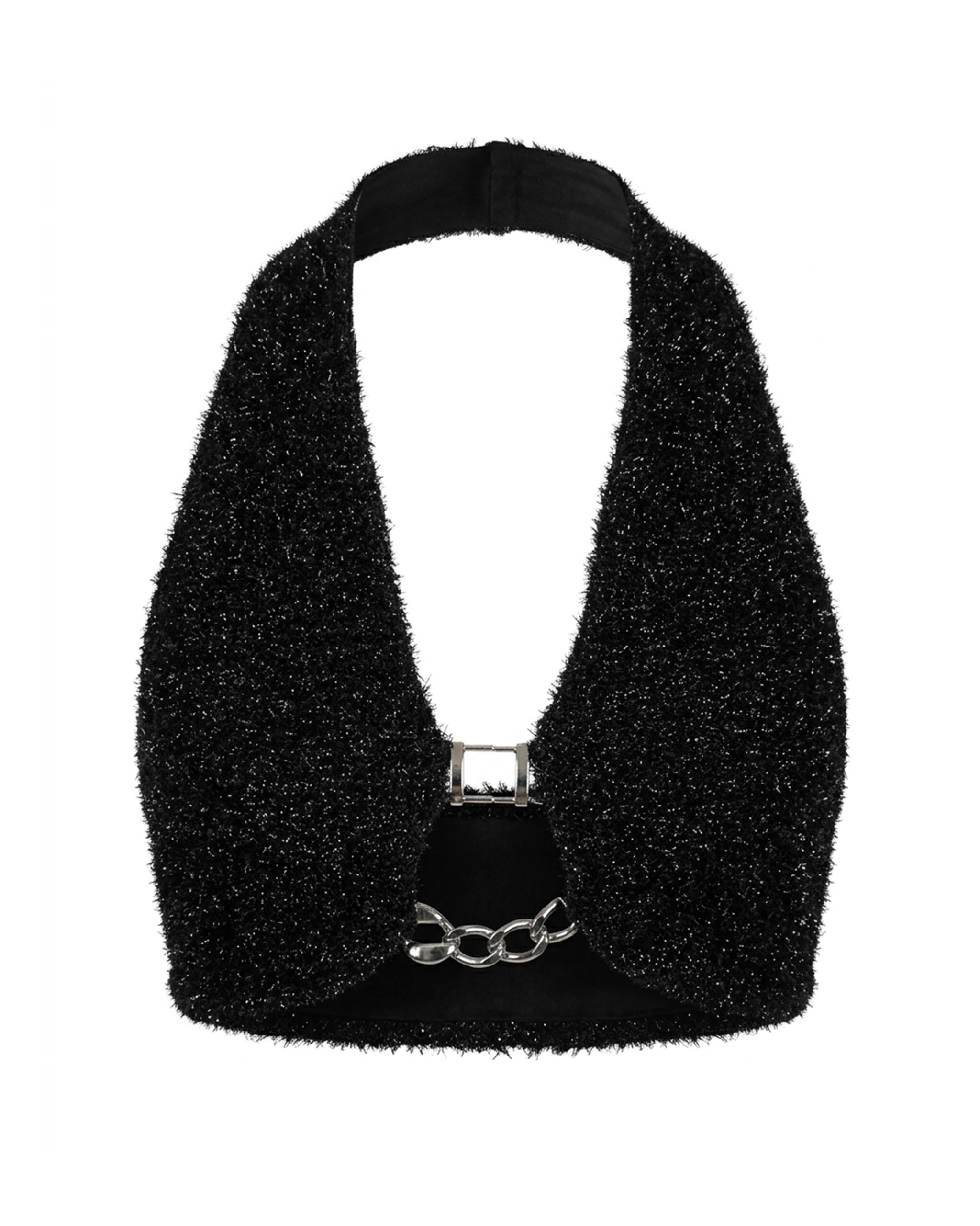 NOCTRA Halo Top - Black textured halter crop top with chain detail