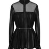 NOIR Veil Corset Blouse - Sheer black pleated mesh top with structured waist