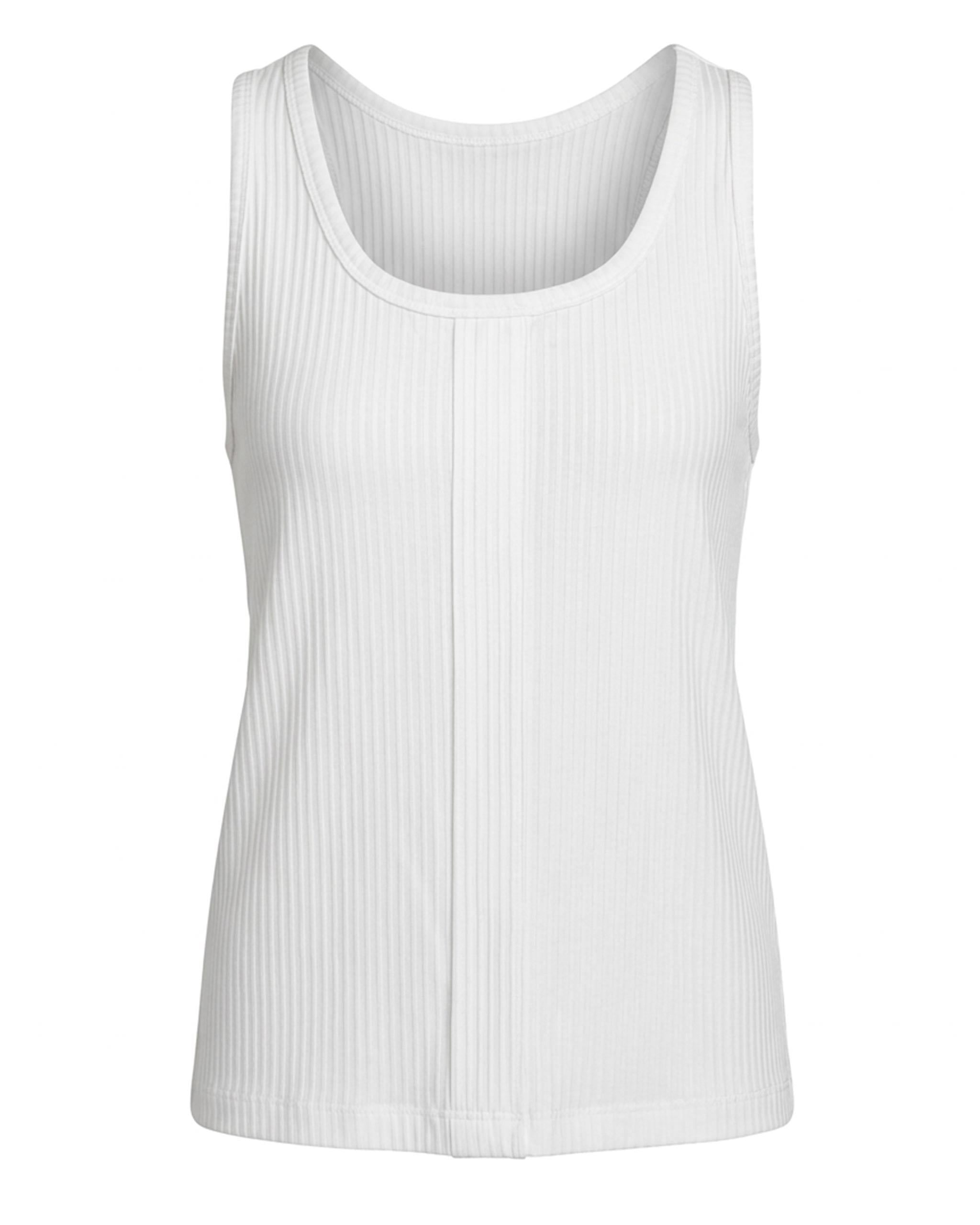 At first glance, the front remains intentionally restrained, a clean, almost anonymous rib tank defined by vertical structure and precise proportions. The fine ribbed texture creates a natural contour along the body, offering both comfort and a lightly sculpting effect. A central seam reinforces the garment’s verticality, adding quiet architectural discipline without breaking its minimal language.