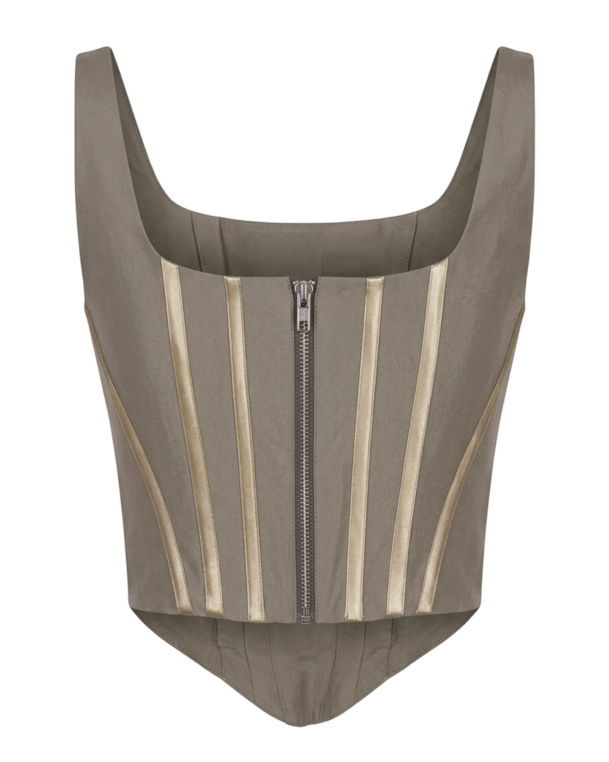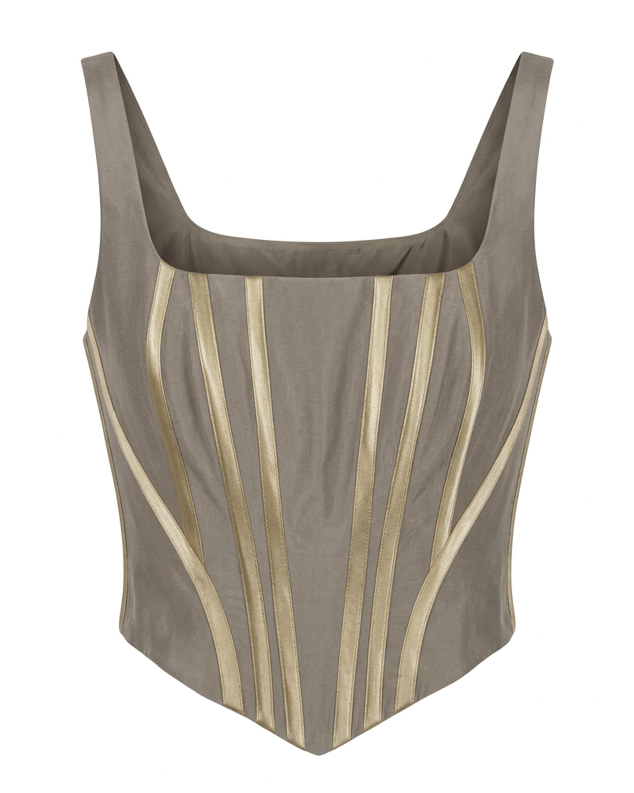 SHADOW STRUCTURE CORSET - Muted taupe corset top with gold architectural lines