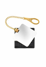 Mit größter Sorgfalt gefertigt Mit viel Liebe zum Detail ist die Vorderseite des Spiegels mit unserem eingravierten Logo und dem aufwendigen Y-Monogramm-Muster verziert, das an den Lederbezug erinnert. Der Anhänger ist mit einer kurzen Kette und einem einzigartigen Karabinerhaken in der gleichen Farbe wie die Vorderseite des Spiegels ausgestattet und für vielseitige Verwendungsmöglichkeiten konzipiert: Schmücken Sie damit Ihre Tasche als schicken Anhänger für einen Abend, befestigen Sie ihn in Ihrer Tasche Halten Sie dieses praktische, einzigartige Accessoire jederzeit griffbereit, wenn Sie es benötigen, oder nehmen Sie es für eine Partynacht mit.
