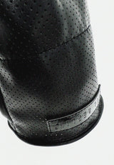 Long Leather Gloves With Elegenat Hole Pattern