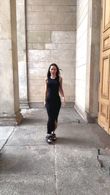 Our Cipher Ribbed Knit Maxi Dress is the definition of bold fluidity. Designed to contour the body with seamless ribbed knit technology, the dress eliminates any tactile seams, creating a sleek, second-skin fit. Its tailored cut sculpts a striking silhouette, while the stretch fabric ensures comfort and ease of movement. A discreet compartment hides behind the stamped MYL logo on the back, an edgy secret detail, perfect for festival nights or subversive evening wear.