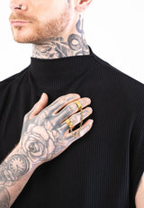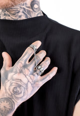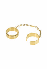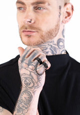 Make an alluring statement with our unique two-finger ring set, featuring a round ring with a rotating wheel for added comfort and a second ring that can be bent to fit your finger. Connected by MYL BERLIN’s signature chain, this one-of-a-kind design is sure to elevate any outfit.